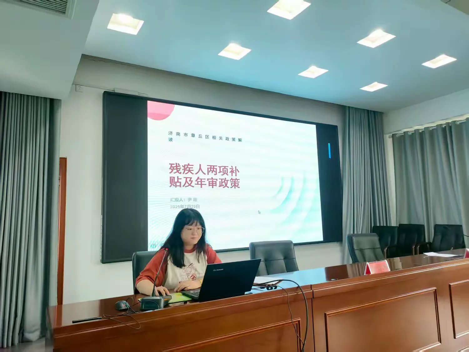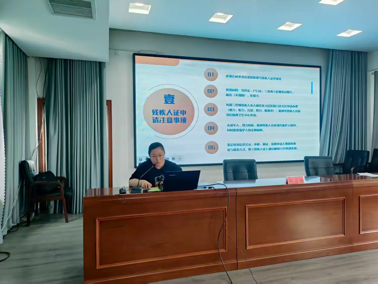 (五)残疾人证办理及残疾人辅具申请工作。工作人员详细介绍了残疾人证申请流程及注意事项并对即将开展的残疾人辅具及家庭无障碍改造工作进行安排。